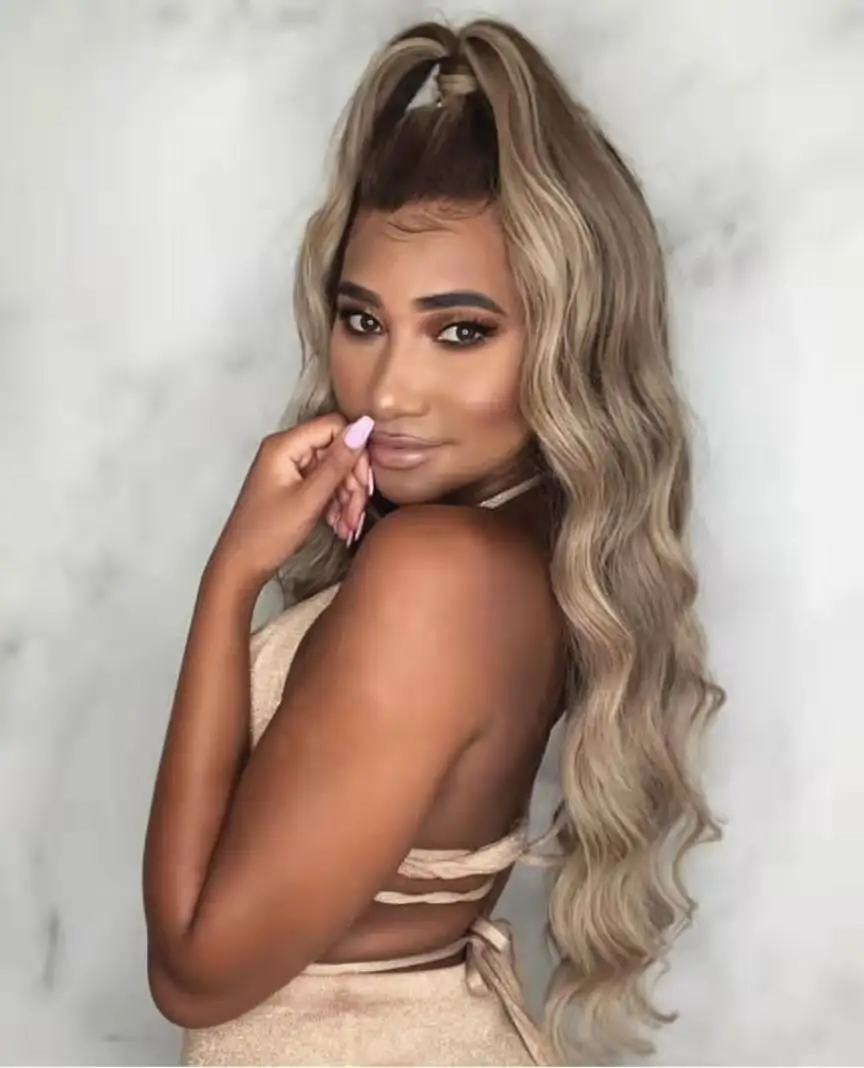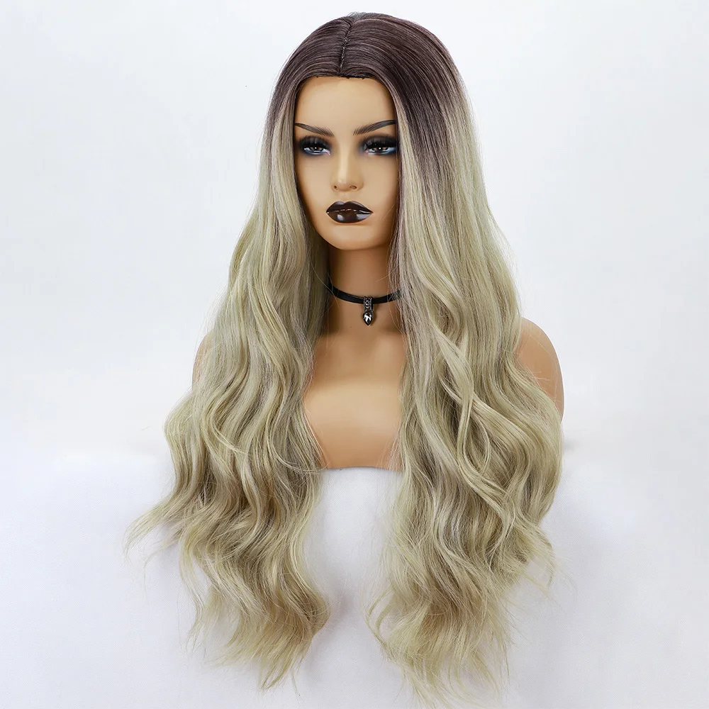 Best Long Wavy Ombre Brown Blonde Synthetic Wigs for African American Women Heat Resistant Fiber Middle