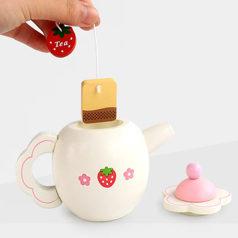 Best Quality Wooden Mini Tea Set Toy Cup Teapots Tray for Children Kids Kitchen Role Playing Game BJStore