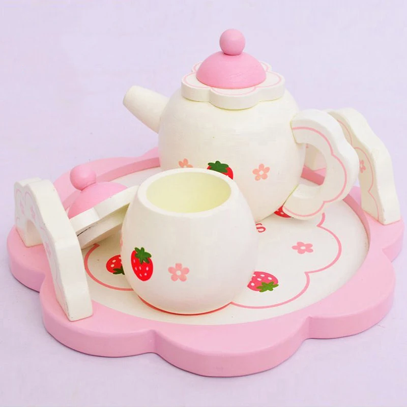 Wooden Mini Tea Set Toy Cup Teapots Tray for Children Kids Kitchen Role Playing Game BJStore