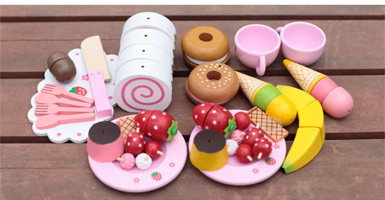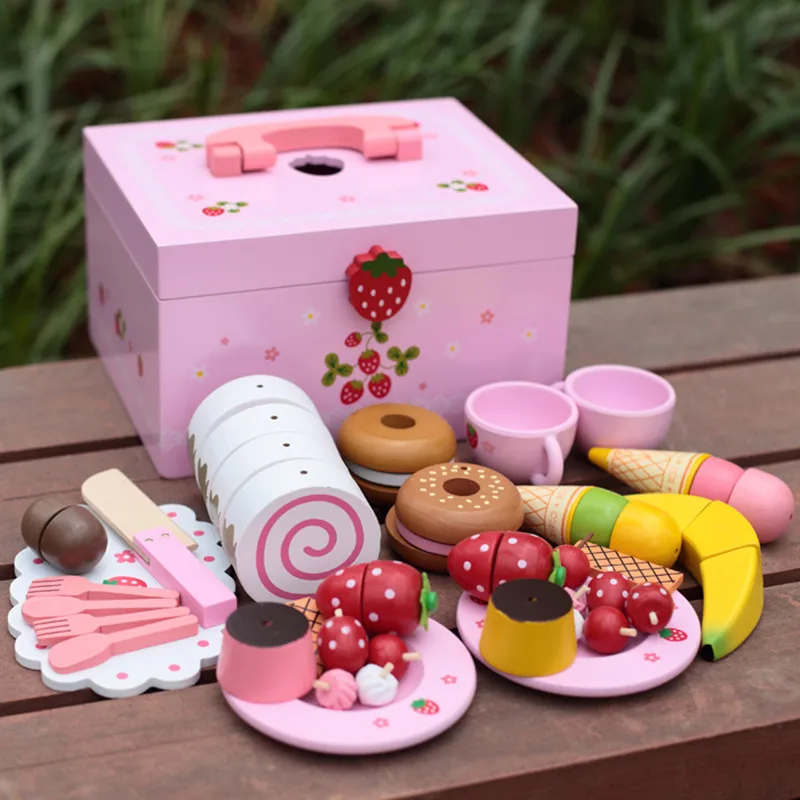 ORIGINAL Baby Toys Strawberry Simulation Cake/Afternoon Tea Set Cut Game Pretend Play Kitchen Food Wooden To