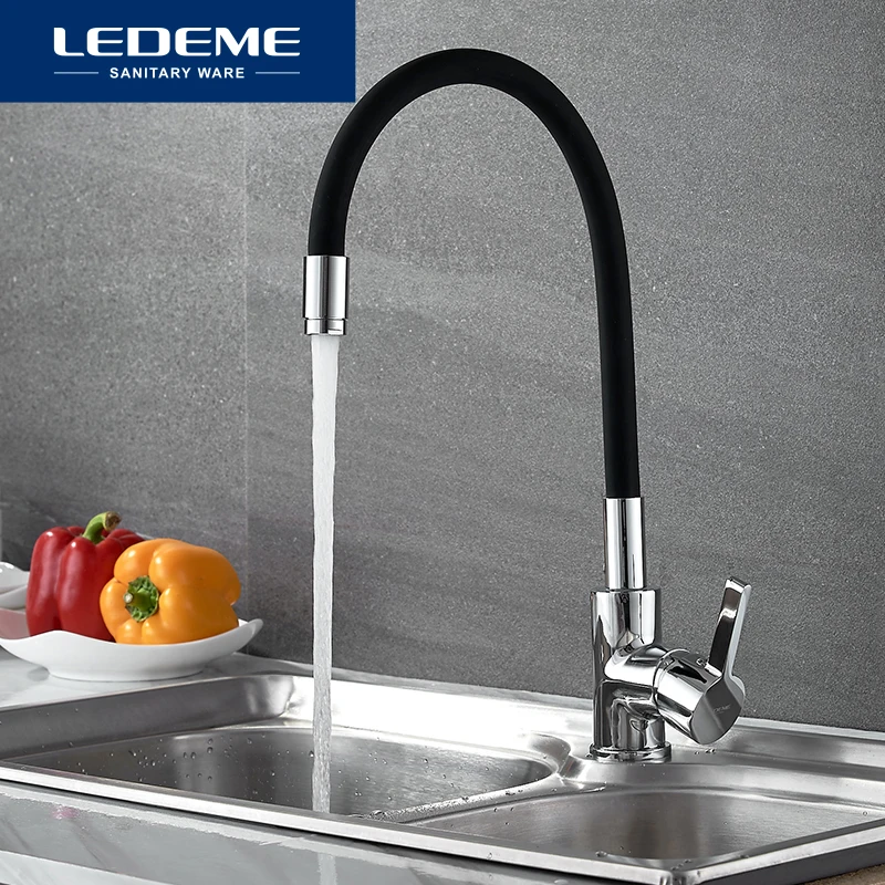 HIGH QUALITY LEDEME Chrome Finish Kitchen Sink Faucet Single Handle Polished Taps Brass Mounted Mixer Water Taps