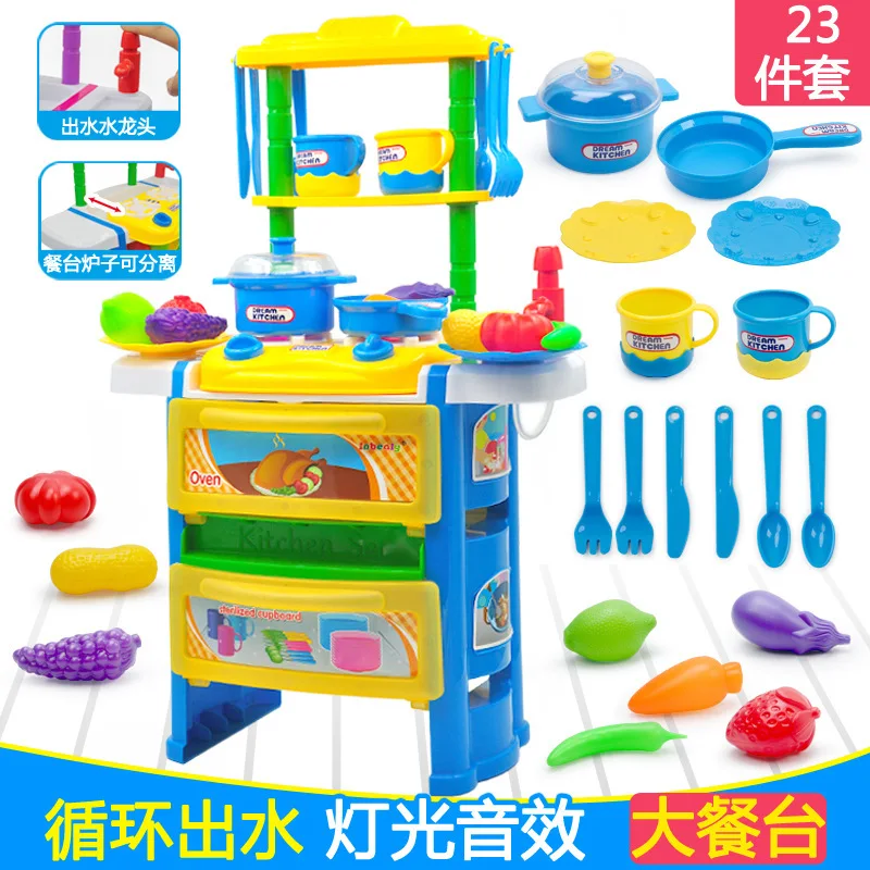 TOP Play House Kitchen Toy Set Upgraded Water Extractor Tap Sound And Light Tableware Taiwan Emulationa