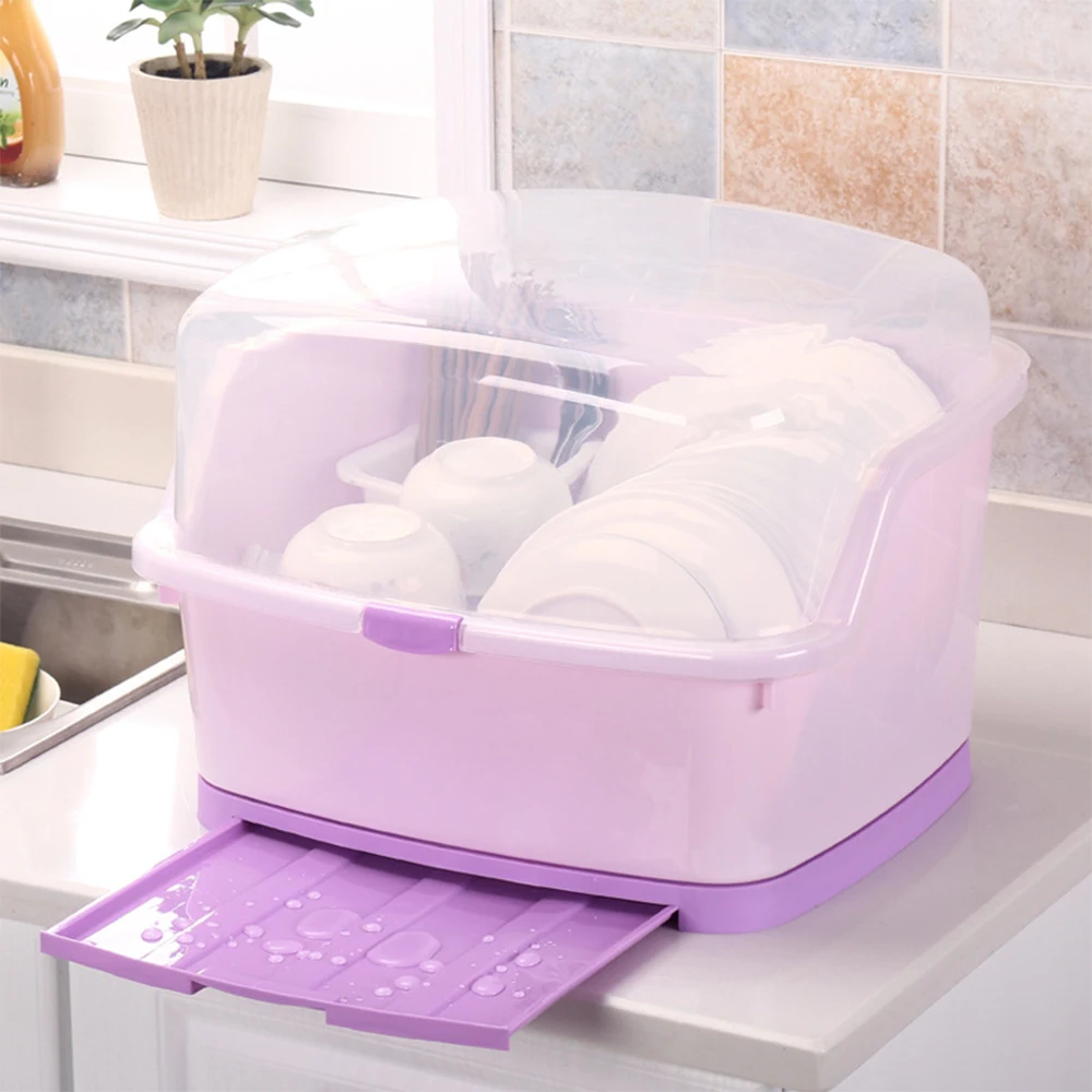ORIGINAL Cupboard Kitchen Drain Dish Rack with Lid Place Plastic Spoon Plate Tableware Cutlery Storage Box F