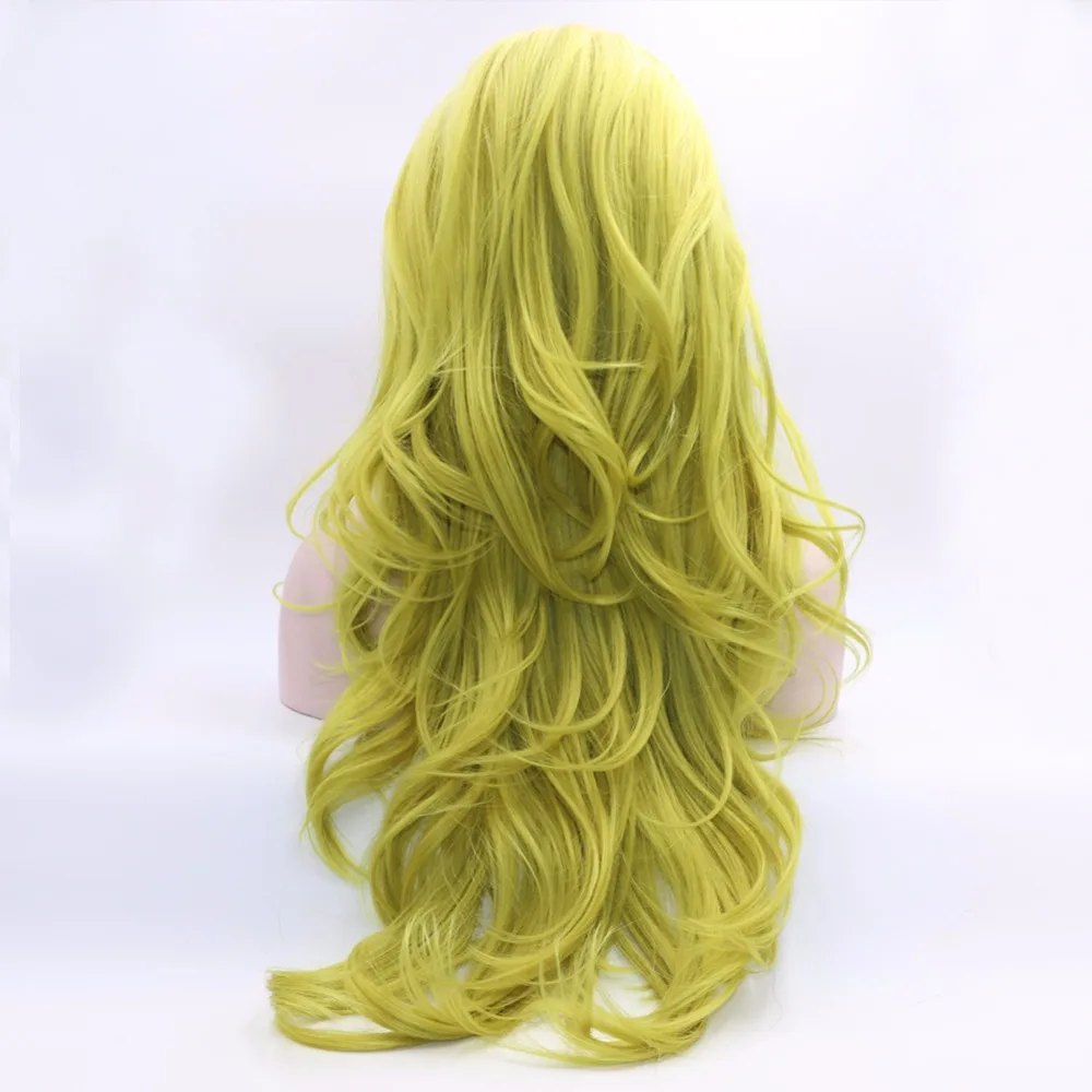 ORIGINAL Fantasy Beauty Long Wavy Ombre Lace Front Wig White Roots Ombre Yellow Green Synthetic Heat Resista