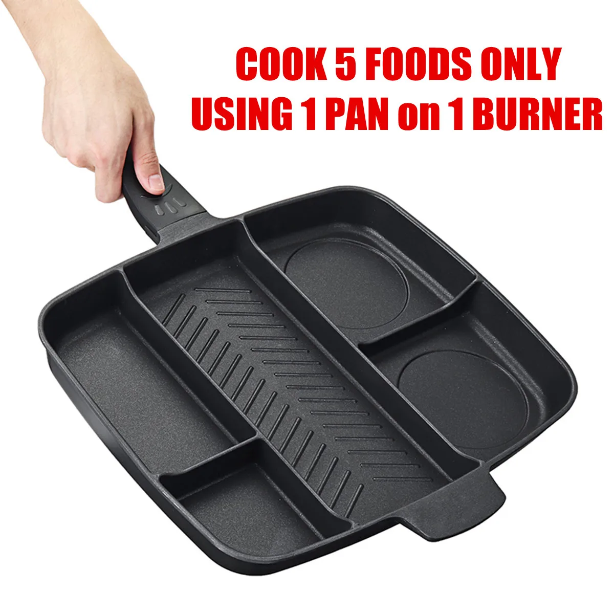 5 In 1 Multifunction Non-Stick Divided Grill Frying Pan Cooking Pan Induction Household Kitchen Too