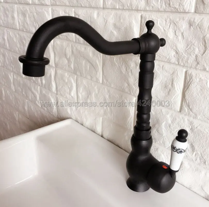 Kitchen Faucet Black Brass Faucet 360 Degree Swivel Single Handle Vessel Sink Vintage Kitchen Mixer
